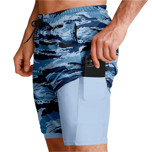 Kamysh Blue Camo Lined Shorts 7"