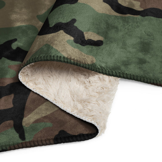M81 Woodland Camo Sherpa Blanket 60” × 80”